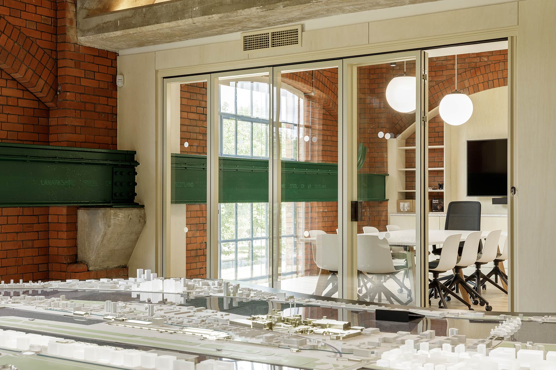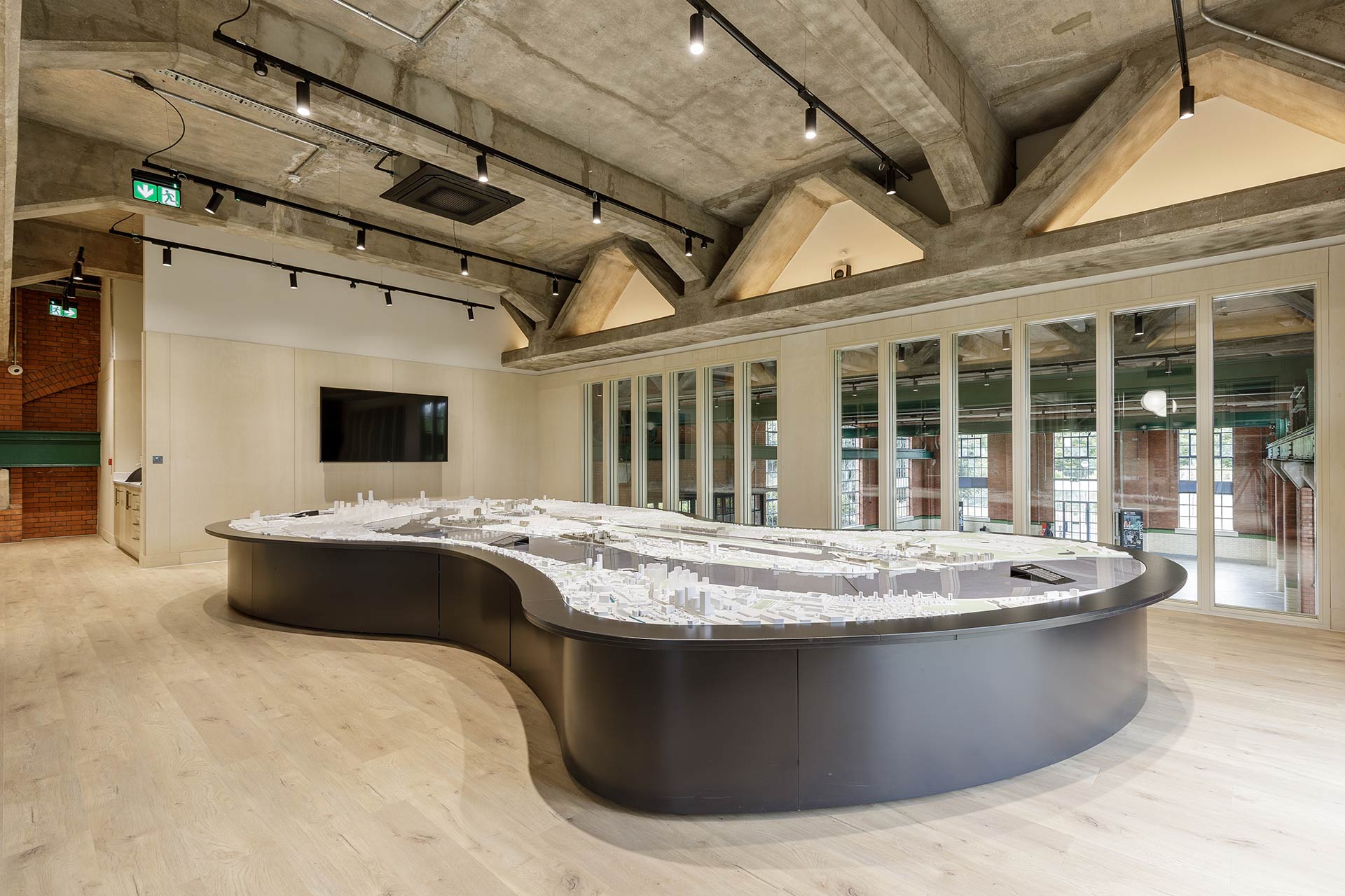 The project involved creating a bespoke multi-use event and workspace, with design playing a key role in enhancing the architectural details of the existing building while ensuring functional requirements were met. Repair works included installing new floor joists throughout the build, and a new mezzanine was added to create a modern workplace environment with space for an existing architectural model.