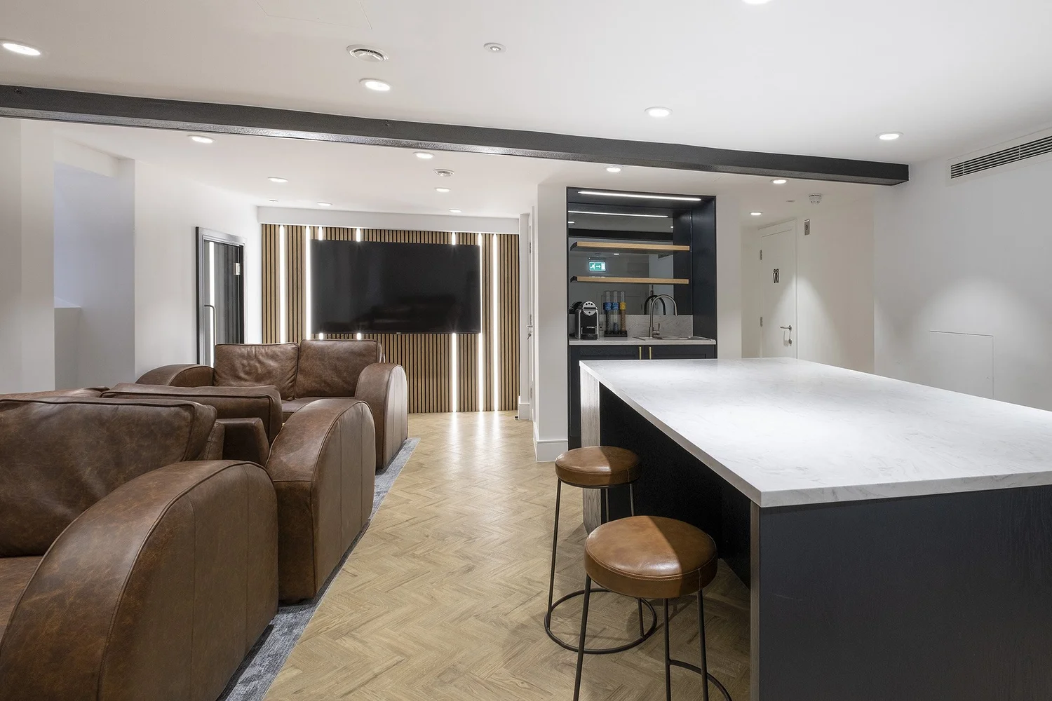 Basement works demanded meticulous attention to damp-proofing and bespoke joinery finishes, while upper floors required precise integration of HVAC and fire safety systems. Continuous collaboration between design and delivery teams enabled proactive problem-solving, maintaining programme integrity and quality standards.