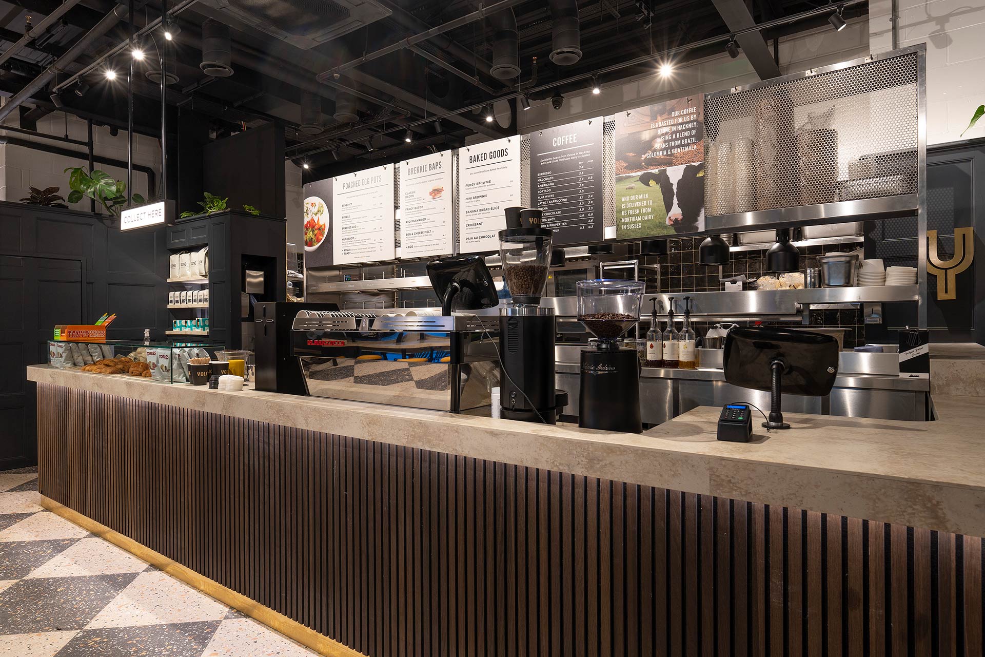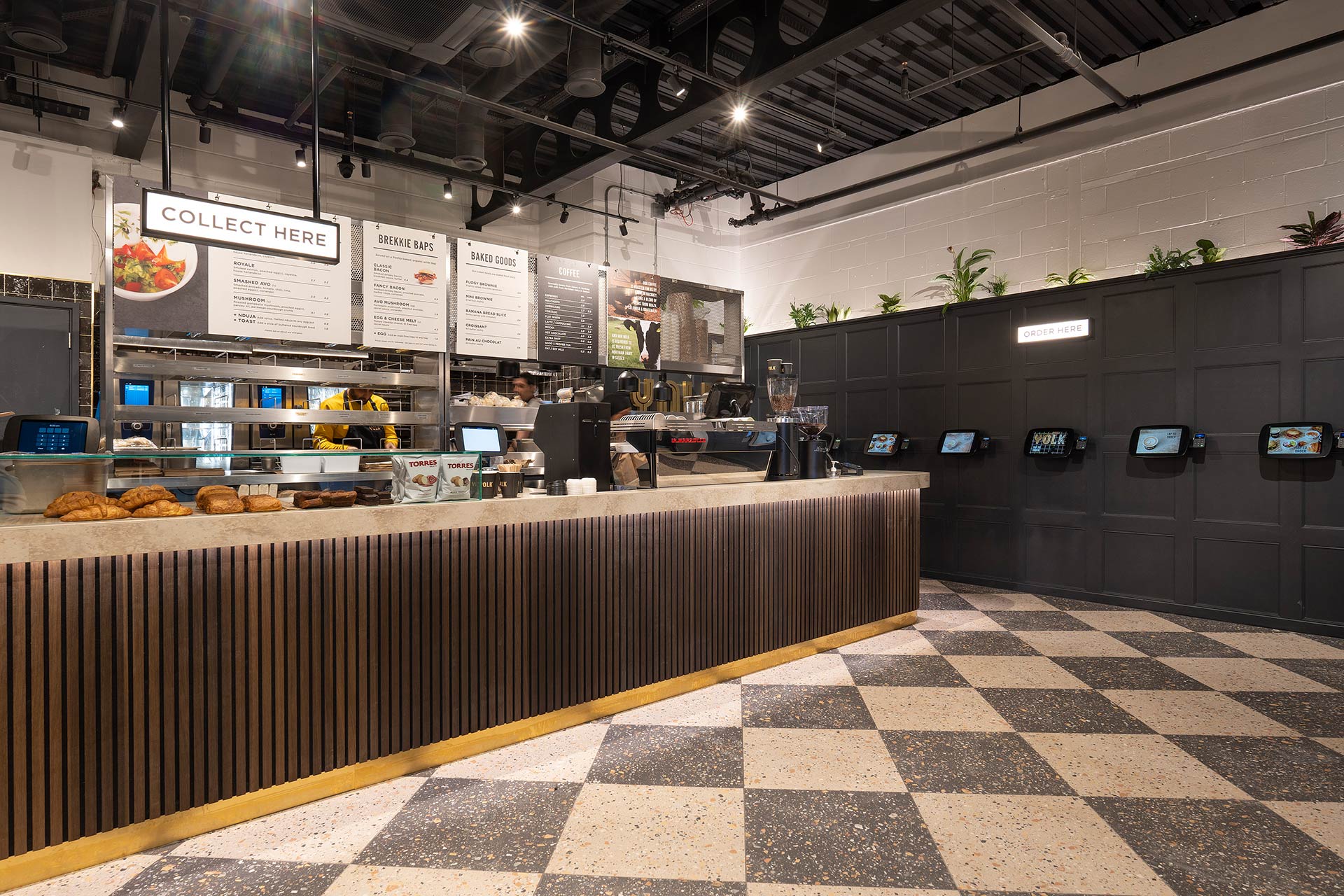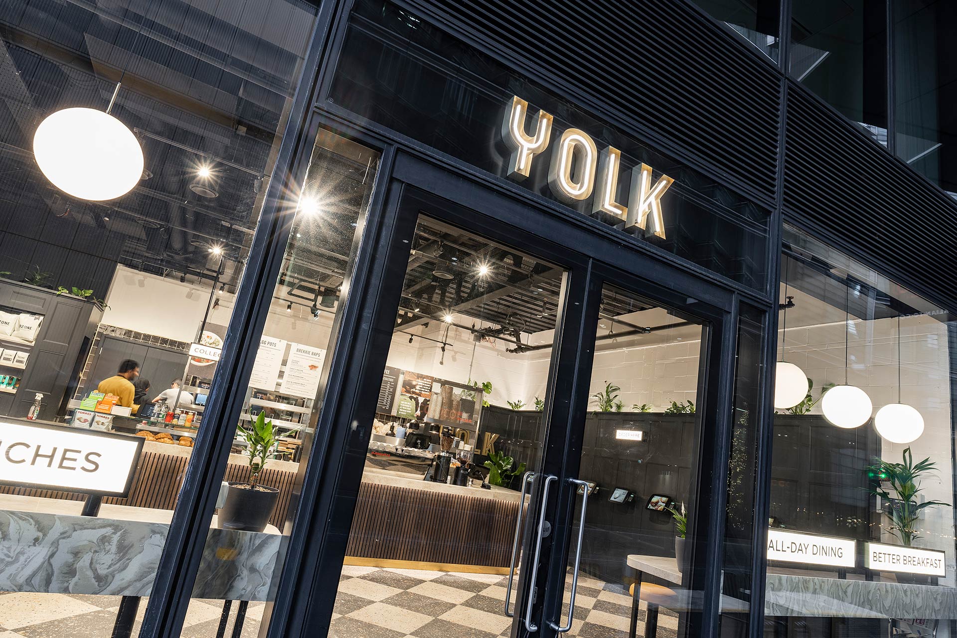 The project involved the design and build of a new retail space for YOLK, requiring bespoke joinery, a custom kitchen, and continuous design development to align with brand standards and operational requirements.