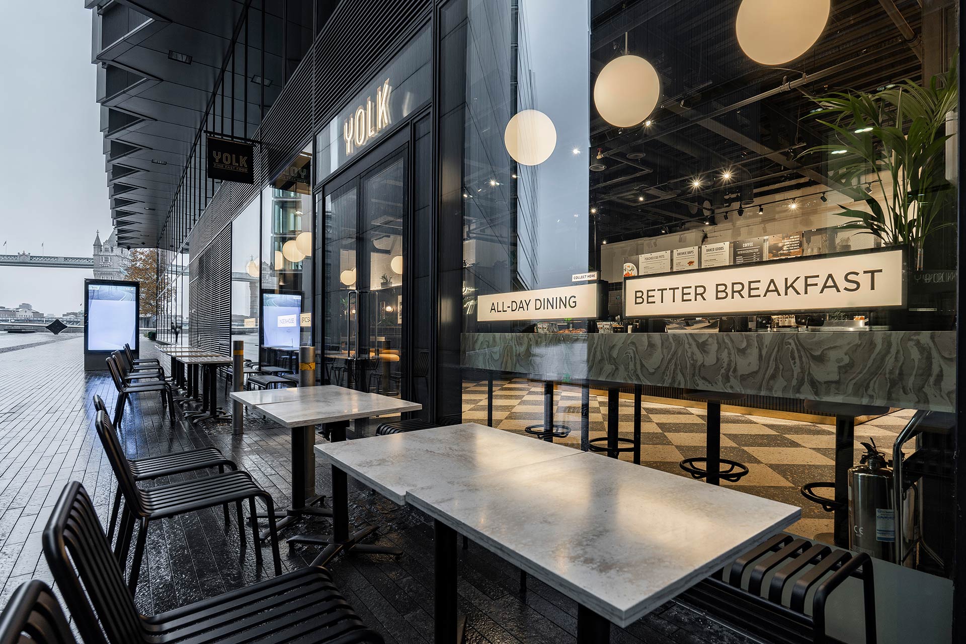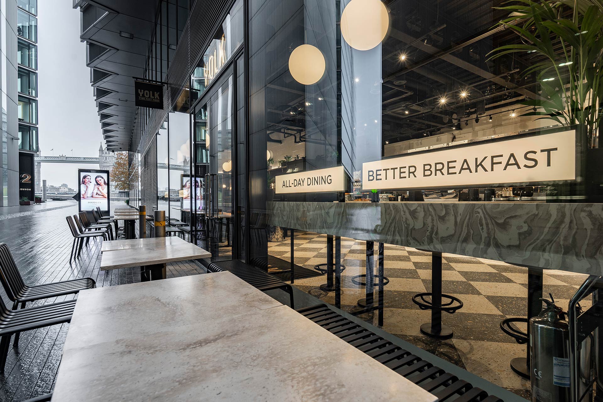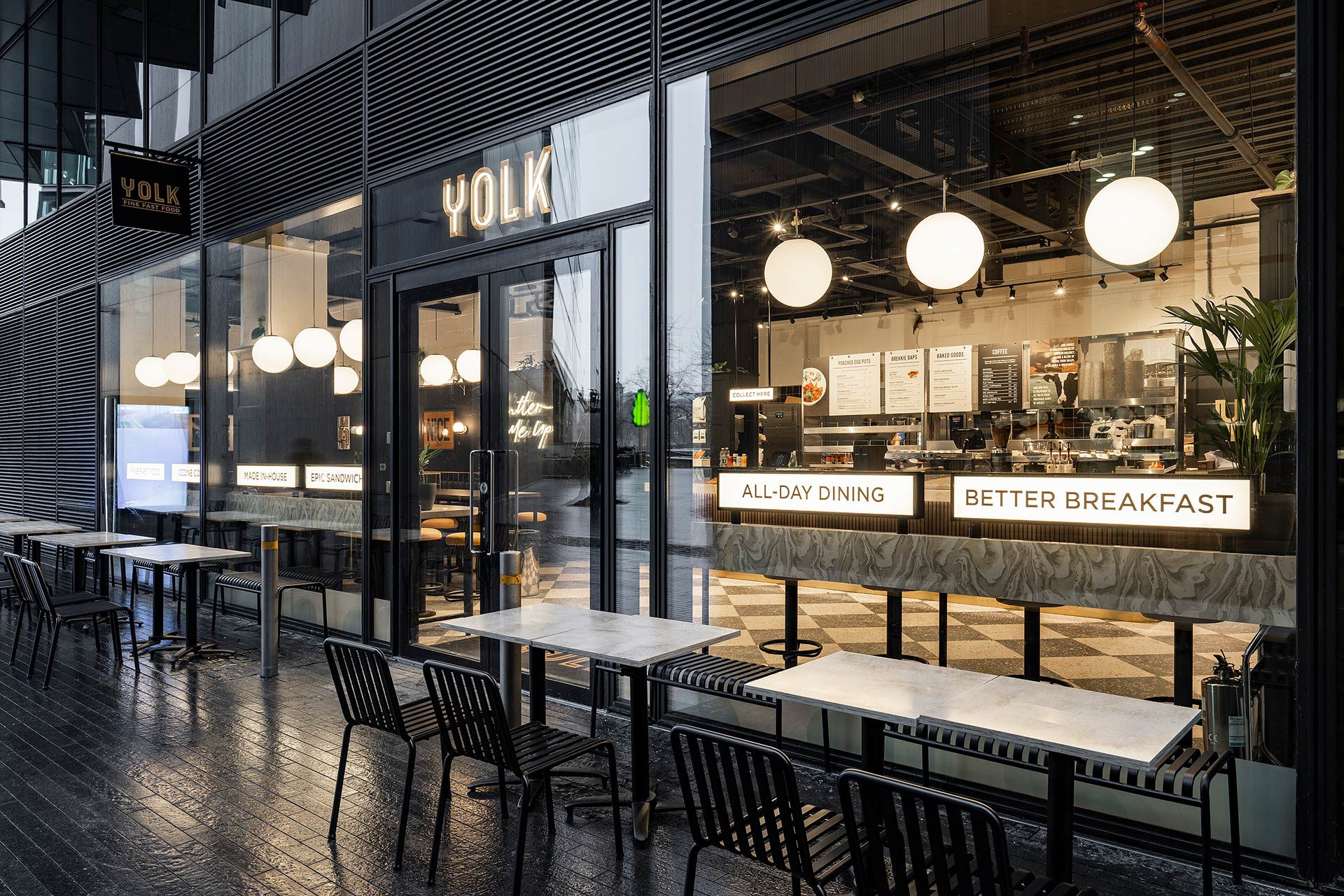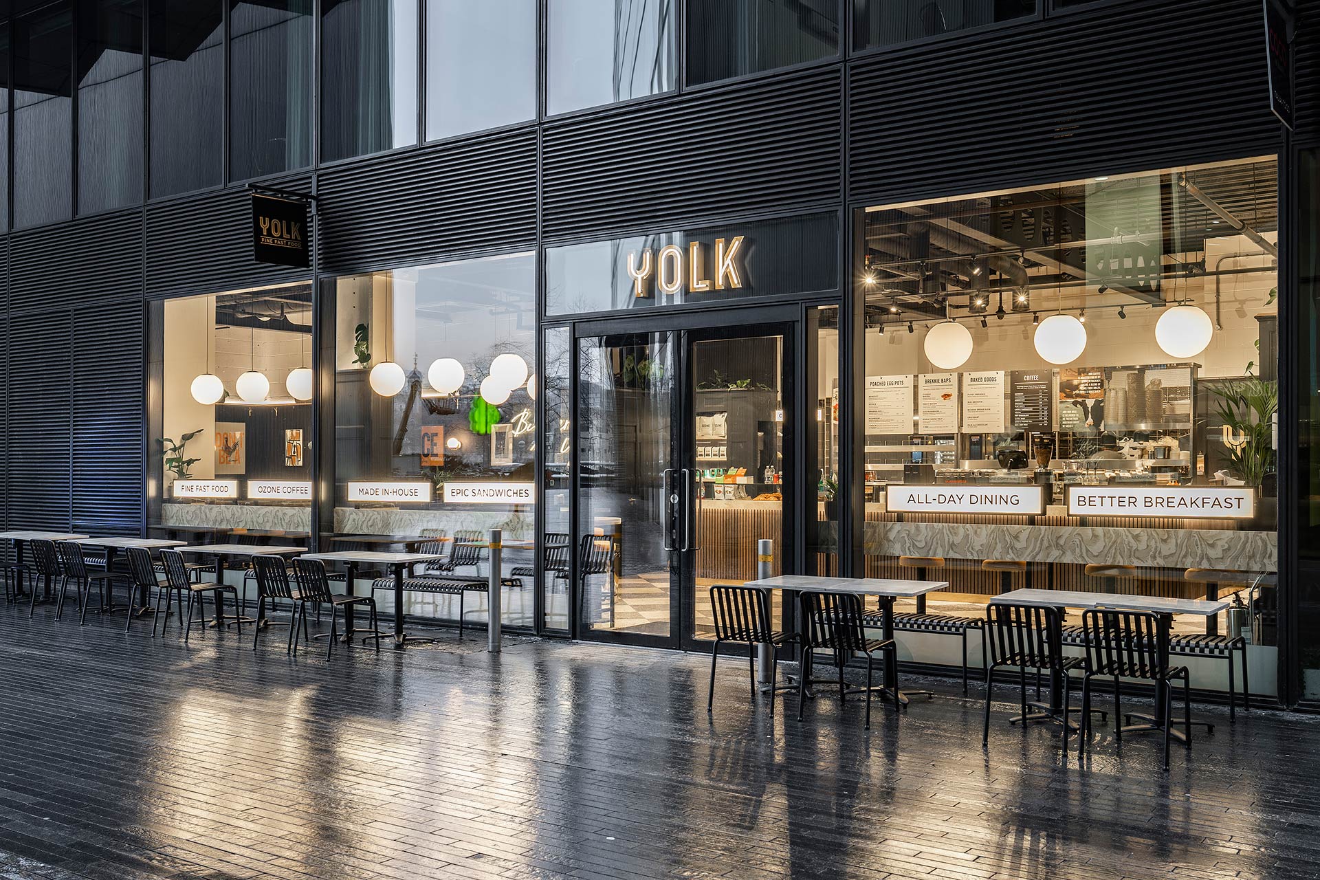 The project involved the design and build of a new retail space for YOLK, requiring bespoke joinery, a custom kitchen, and continuous design development to align with brand standards and operational requirements.